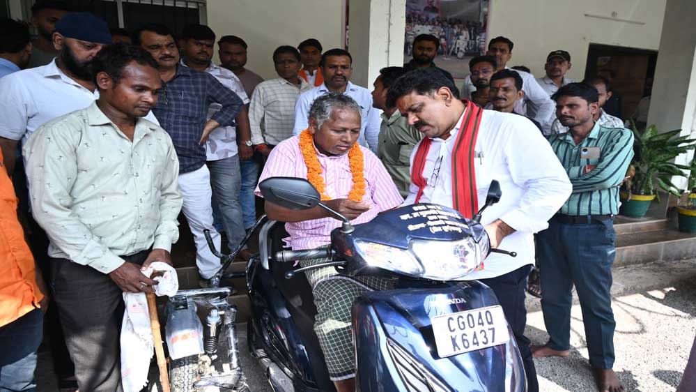 रायपुर : उप मुख्यमंत्री विजय शर्मा ने दिव्यांग युवक को दिया आगे बढ़ने का सहारा, अमर मरकाम को तत्काल मिली स्कूटी