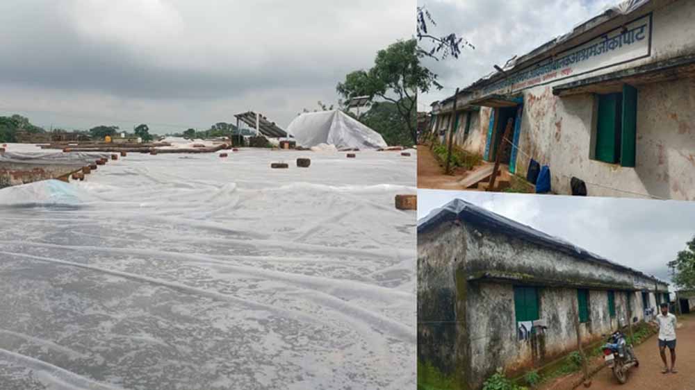 जर्जर छात्रावास बना खतरा: टपकती छत को प्लास्टिक से ढंका, मासूमों की जिंदगी दांव पर