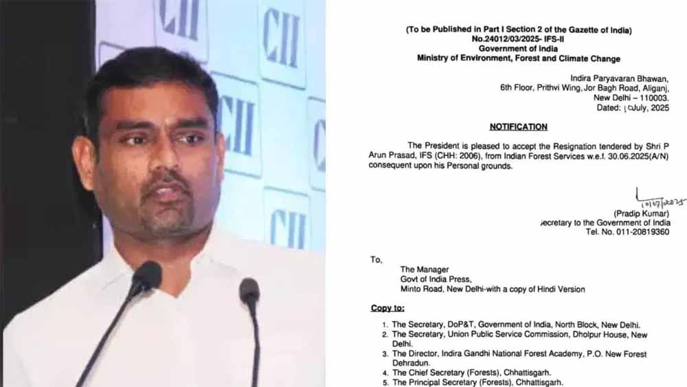 रायपुर केंद्र सरकार ने 2006 बैच के IFS अधिकारी अरुण प्रसाद के इस्तीफे को मंजूरी दे दी है. भारत सरकार