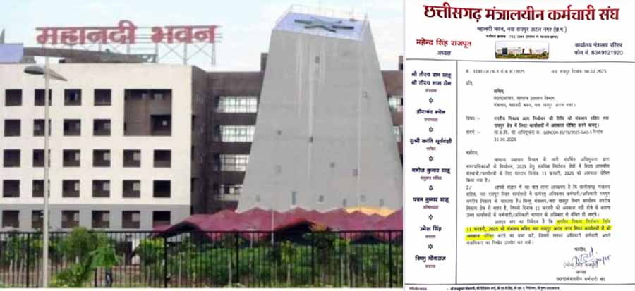 रायपुर छत्तीसगढ़ मंत्रालयीन कर्मचारी संघ ने सामान्य प्रशासन विभाग के सचिव को पत्र लिखकर मतदान के दिन मंत्रालय सहित रायपुर