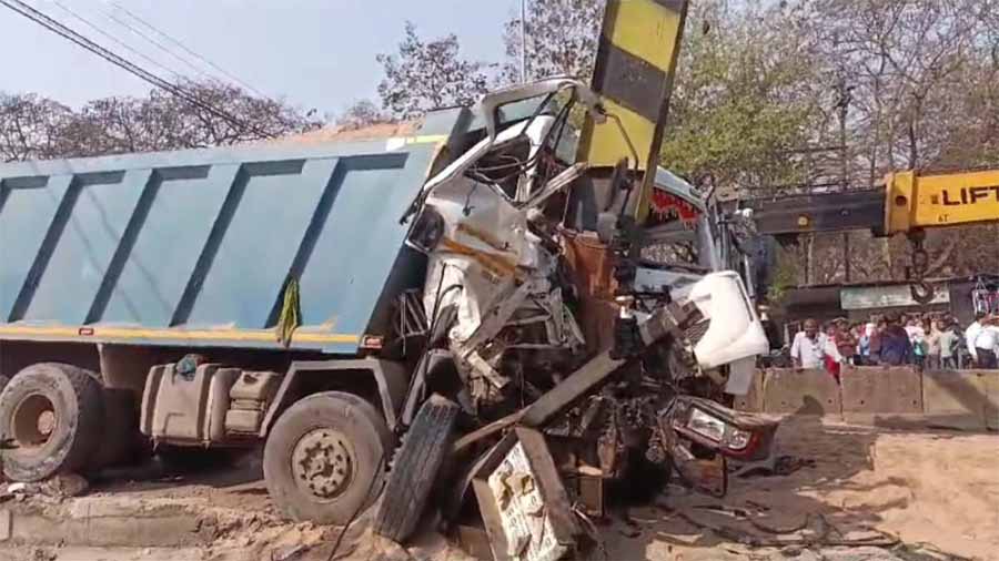 तेज रफ्तार का कहर: हाईवा ने बाइक सवार को ठोकर मार खंभे से जा टकराई