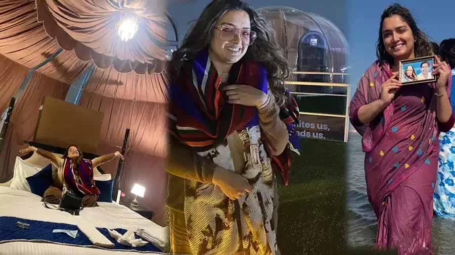 अभिनेत्री ईशा गुप्ता ने संगम में लगाई डुबकी
