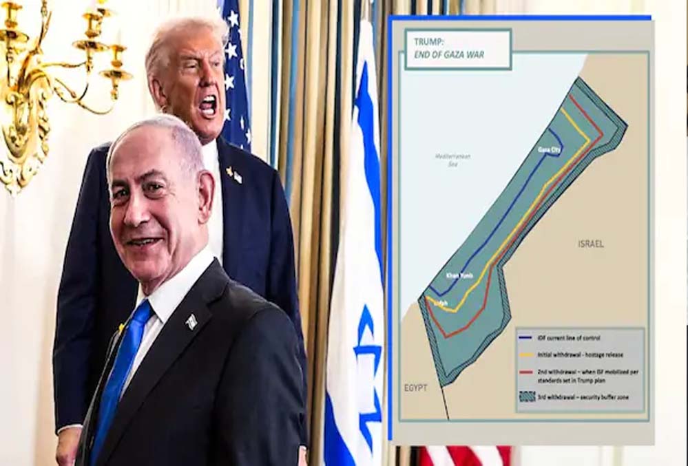गाज़ा का बदला नक्शा: ट्रंप की योजना में इज़रायल बॉर्डर पर बफर ज़ोन, जानिए ब्लू-येलो-रेड लाइन का मतलब
