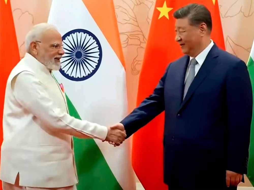 चीन शंघाई सहयोग संगठन (SCO) शिखर सम्मेलन के मौके पर चीन के राष्ट्रपति शी जिनपिंग और प्रधानमंत्री नरेंद्र मोदी की