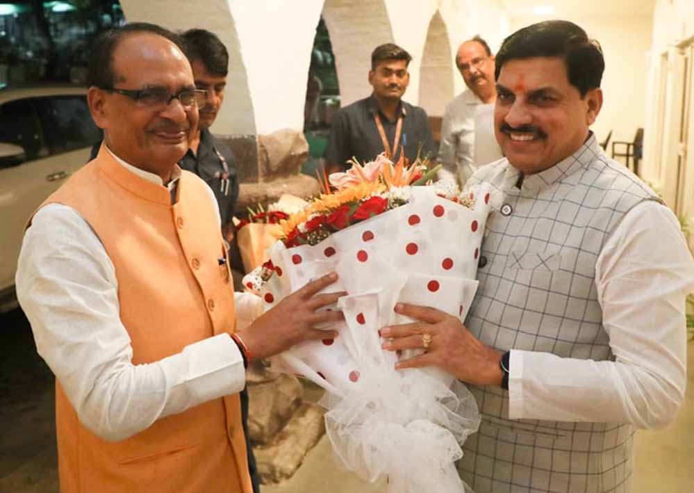 भोपाल: सीएम शिवराज सिंह यादव डॉ. मोहन यादव ने पुष्पगुच्छ से किया स्वागत