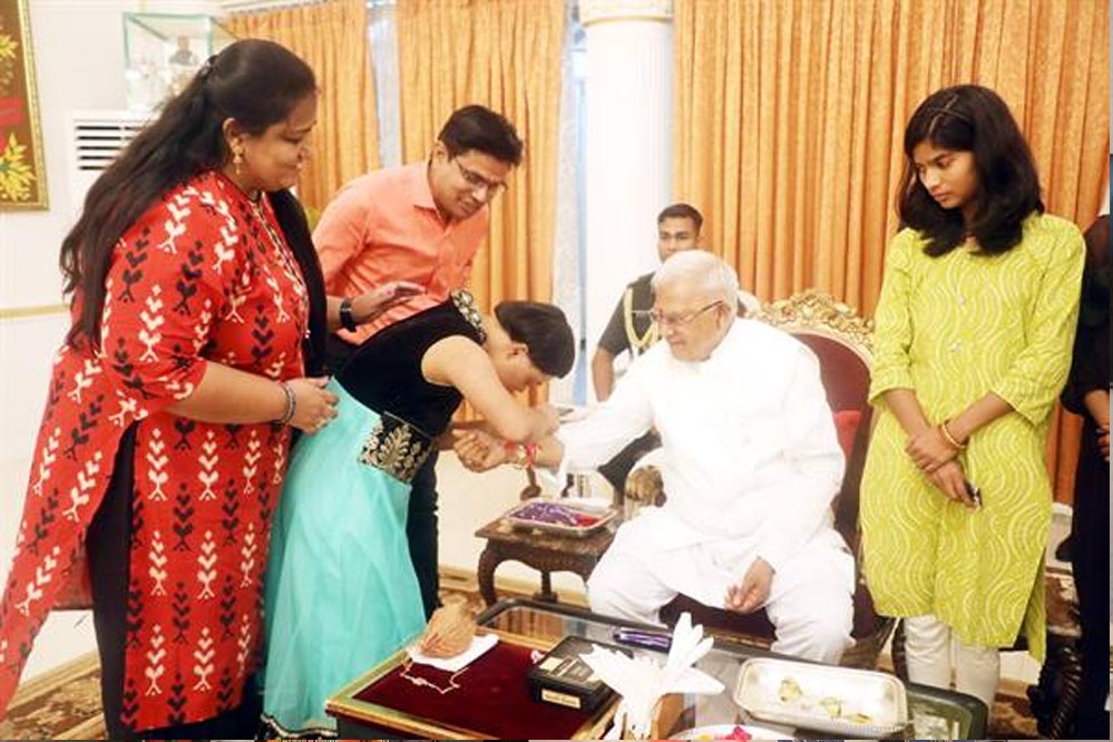 राज्यपाल पटेल को राखी बांधकर राजभवन में मनाया गया रक्षाबंधन पर्व