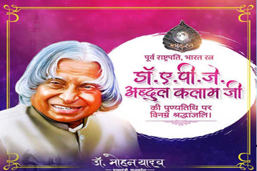 मुख्यमंत्री डॉ. यादव ने पूर्व राष्ट्रपति डॉ. कलाम की पुण्य तिथि पर श्रद्धांजलि अर्पित की