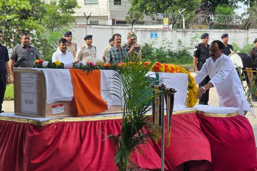 वीरगति को प्राप्त हुए सिपाही श्री हरिओम नागर का पार्थिव शरीर पहुंचा भोपाल मंत्री श्री राकेश शुक्ला ने दी श्रद्धांजलि