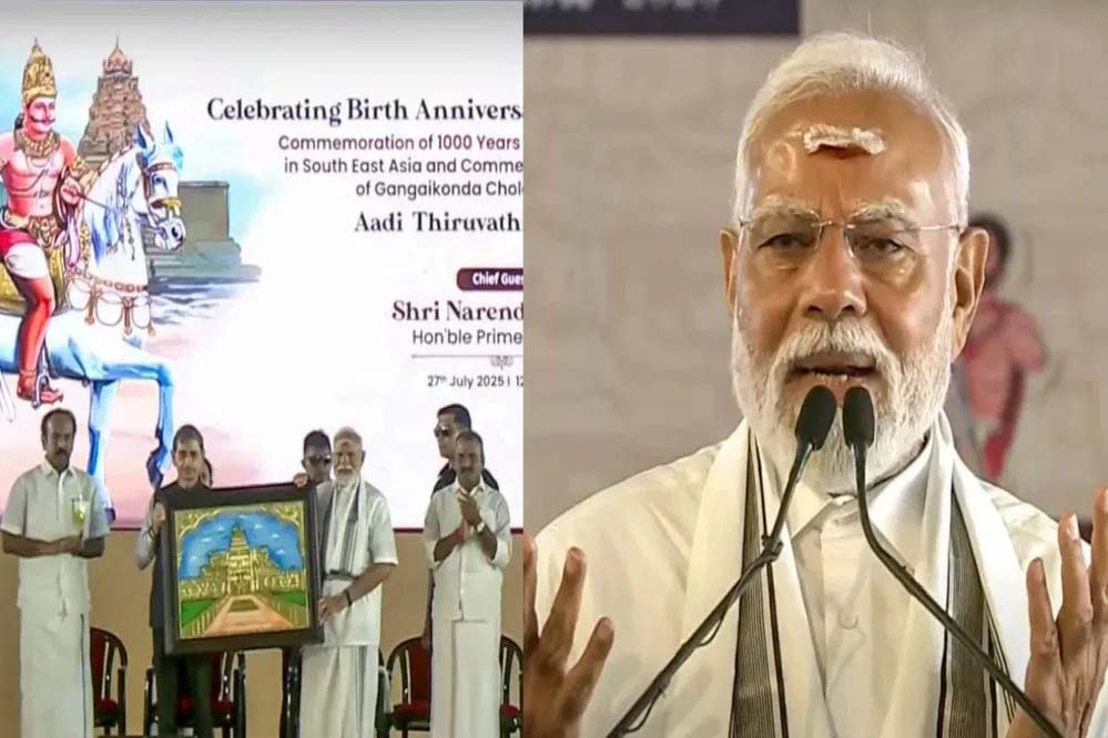 गंगईकोंडा प्रधानमंत्री नरेंद्र मोदी ने गंगईकोंडा चोलपुरम मंदिर में महान चोल सम्राट राजेंद्र चोल प्रथम की जयंती के अवसर पर