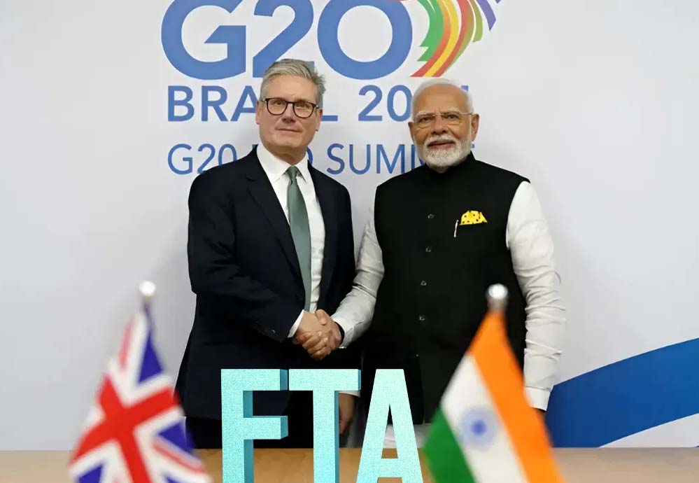 नई दिल्ली भारत और यूनाइटेड किंगडम (UK) के बीच द्विपक्षीय व्यापर को लेकर फ्री ट्रेड एग्रीमेंट (FTA) पर साइन हो