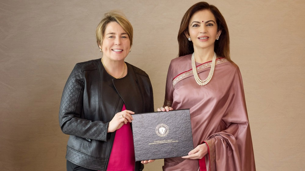 मुंबई संस्थापक अध्यक्ष श्रीमती नीता अंबानी को मैसाचुसेट्स की गवर्नर माननीय मौरा हीली द्वारा प्रतिष्ठित गवर्नर प्रशस्ति पत्र से सम्मानित