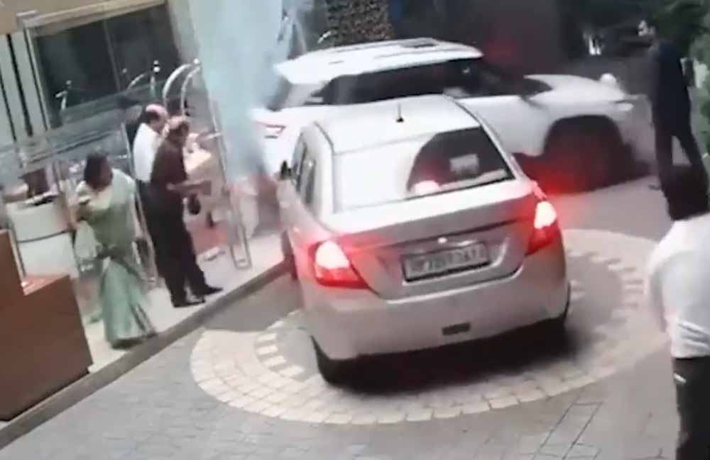 महिला अधिवक्ता की कार ने ली रफ्तार, होटल की दीवार तोड़ी — सीसीटीवी फुटेज वायरल