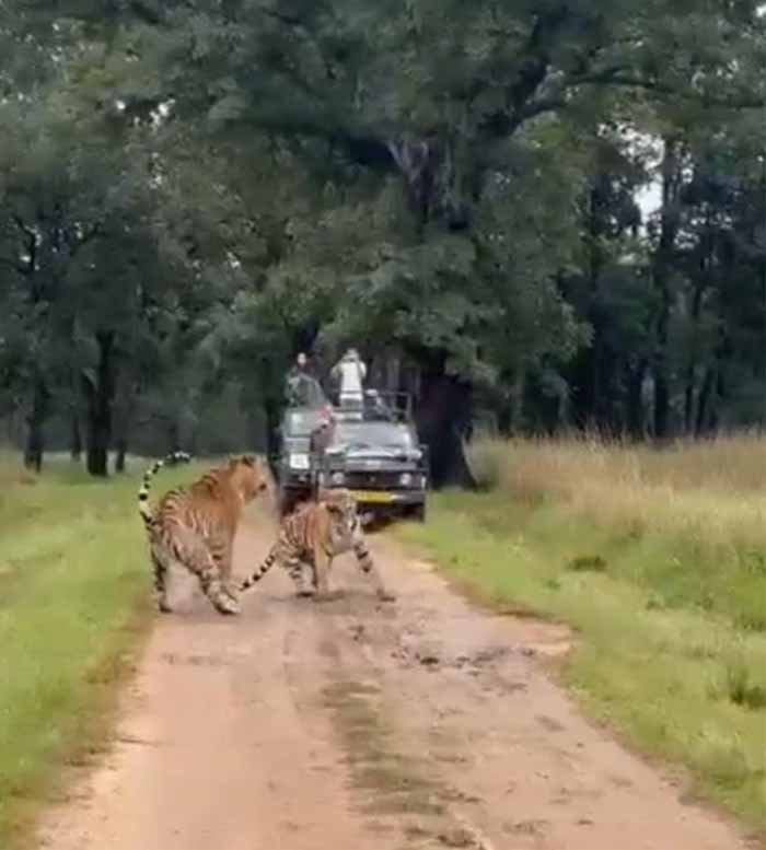 MP का कान्हा टाइगर रिजर्व: बाघ-बाघिन की रोमांचक आमने-सामने की झलक, सैलानियों ने किया कैद!