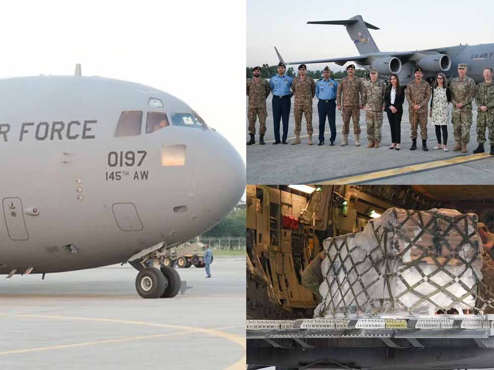 रावलपिंडी पाकिस्तान में आई विनाशकारी बाढ़ से प्रभावित लोगों की सहायता के लिए अमेरिका ने कई विमानों में भरकर राहत