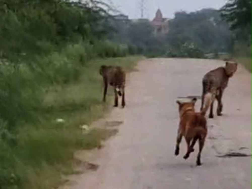 कूनो के दो चीते मानपुर में मचाने लगे धमाल, कुत्ते संग पीछे-पीछे दौड़े ग्रामीण