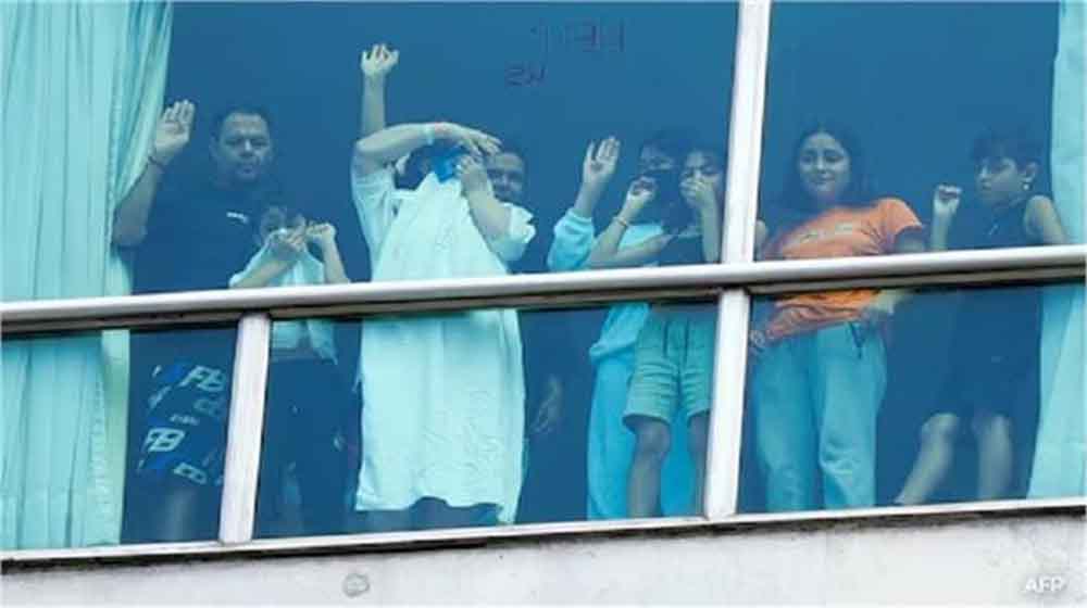 पनामा के एक होटल में रखे गए प्रवासी कागज पर लिखे संदेशों के जरिए मदद की गुहार लगा रहे लोग